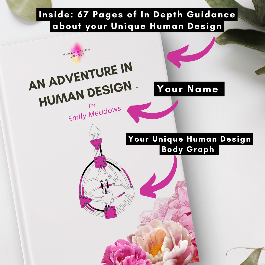 Dive into your Adventure in Human Design! Your 67-page book is yours for keeps and will be a treasured go-to guide for years to come.