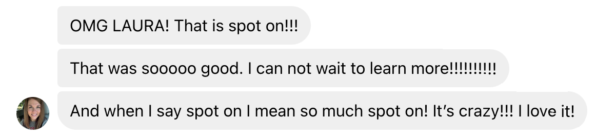 As a new student of Human Design, I can say that Laura puts the information across in the most easy to understand way... I'm so excited to be on this journey. If you're interested in learning about Human Design, I would highly recommend taking the leap with Laura - she truly has developed a way of explaining my values, the way I do things... It really is amazing. She truly gets Human Design and how you can use it to learn more about yourself and others.